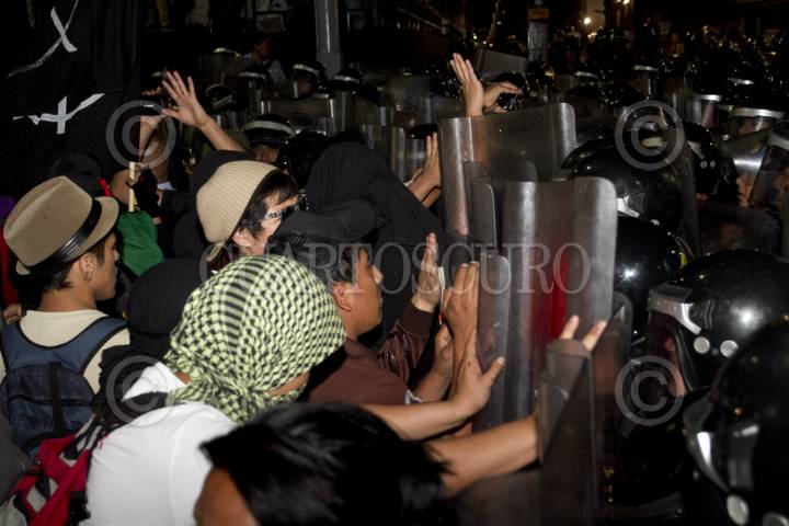 MÉXICO, D.F., 01JULIO2013.- Tras de varias horas un grupo de jóvenes Anarquistas, luego de realizar una marcha del Ángel de la Independencia a la Torre de PEMEX y de regresó, culminaron en la Plancha del Zócalo Capitalino, esto acompañado de un fuerte dispositivo de seguridad que implemento la Secretaria de Seguridad del Distrito Federal. FOTO: GUILLERMO PEREA /CUARTOSCURO.COM
