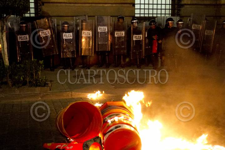 MÉXICO, D.F., 01JULIO2013.- Tras de varias horas un grupo de jóvenes Anarquistas, luego de realizar una marcha del Ángel de la Independencia a la Torre de PEMEX y de regresó, culminaron en la Plancha del Zócalo Capitalino, esto acompañado de un fuerte dispositivo de seguridad que implemento la Secretaria de Seguridad del Distrito Federal. FOTO: GUILLERMO PEREA /CUARTOSCURO.COM