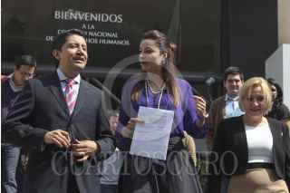 MÉXICO D.F., 03JULIO2013.- Olivia Garza, Laura Ballesteros y Orlando Anaya, diputados locales, presentaron una queja ante la Comisión Nacional de Derechos Humanos para que se investiguen todos lo casos de omisión en pensiones alimenticias por parte de cualquier funcionarios o exfuncionarios públicos, como presuntamente lo ha hecho el exministro Genaro Góngora Pimentel. FOTO: SAÚL LÓPEZ /CUARTOSCURO.COM