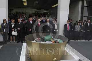 MÉXICO, D.F., 03JULIO2013.- Edgar Elías Azar, Presidente del Tribunal Superior de Justicia del Distrito Federal, encabezó la ceremonia de incineración de bandera en la entrada de la sede del Tribunal Superior de Justicia del Distrito Federal. FOTO: GUILLERMO PEREA /CUARTOSCURO.COM