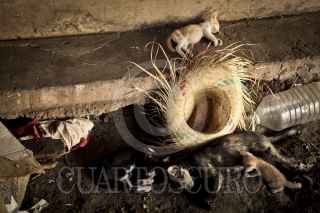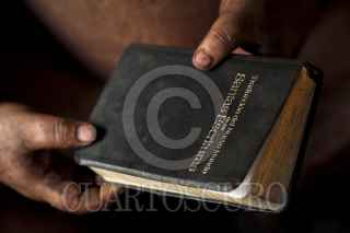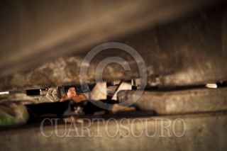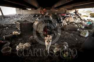 CULIACAN, SINALOA, 05JULIO2013: Santos Venegas Castañeda de 45 años de edad, tiene su hogar bajo el puente que cruza el rio Tamazula a un costado del puente Negro. Así como Venegas alrededor de 10 personas más, viven en estas condiciones de pobreza extrema; Santos lleva 3 años viviendo así debido a que su papá perdió la vida y con ello el hogar, no tiene esposa ni hijos solo un hermano que le ayuda con la comida que de igual manera vive abajo del puente. La compañía de Santos es un perro que lleva por nombre Negro, una paloma que salvo y alrededor de 6 gatos, su pasatiempo es leer la Biblia. FOTO: RASHIDE FRIAS /CUARTOSCURO.COM
