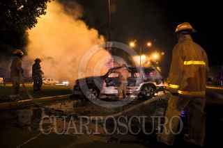 CULIACÁN, SINALOA, 06JULIO2013.- Después de un fuerte choque automovilístico por el malecón nuevo, una persona quedo atrapada dentro de la unidad quien fue ayudada por civiles rápidamente para salir de la unidad y posteriormente trasladada a un hospital, minutos más tarde exploto en llamas, el cuerpo de bomberos acudió al lugar para controlar el siniestro. FOTO: RASHIDE FRIAS /CUARTOSCURO.COM