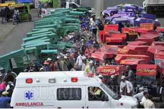 XOXOCOTLA, MORELOS, 06JULIO2013.- Habitantes y uniones de mototaxistas de la comunidad de Xoxocotla, realizaron un bloqueo a la entrada de esta localidad con la finalidad de partir un pastel a un año de que gobernador del estado, Graco Ramirez les donaría una ambulancia misma que hasta la fecha no ha sido equipada y tampoco se ha capacitado a nadie para su uso, por lo que se encuentra abandonada. FOTO: ALMA LAFAYET /CUARTOSCURO.COM