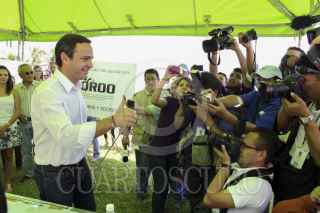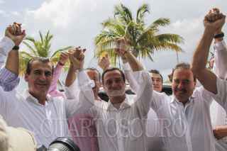 CANCUN, QUINTANA ROO, 07JULIO2013.- Paul Carrillo, candidato del PRI a la presidencia de Cancun en el momento de emitir su voto acompañado de Emilio Gamboa coordinador del pri en la camara de senadores. FOTO: ELIZABETH RUIZ /CUARTOSCURO.COM