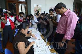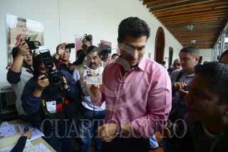 XALAPA, VERACRUZ, 07JULIO2013.- El candidato priista a la diputación local, David Velasco Chedrahui, no pudo emitir su voto ya que la credencial de elector que traía no correspondía a la registrada en el padrón electoral. FOTO: RUBÉN ESPINOSA / CUARTOSCURO.COM