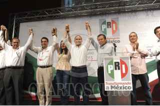 TIJUANA, BAJA CALIFORNIA, 07JULIO2013.- Fernando Castro Trenti, candidato a la gubernatura de Baja California, fue declarado triunfador de esa elección por el dirigente Nacional del PRI César Camacho. FOTO: CUARTOSCURO.COM