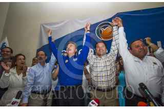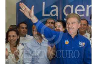 TIJUANA, BAJA CALIFORNIA, 07JULIO2013.- Francisco "Kiko" Vega de la Madrid candidato a gobernador de Baja California por el PAN se proclama ganador de la jornada electoral acompannado de su equipo de trabajo en la ciudad de Tijuana. FOTO: FRANCISCO VEGA /CUARTOSCURO.COM