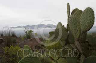 EL ARENAL, HIDALGO 08JULIO2013.- Paisaje del Valle del Mezquital bajo la neblina luego de varias horas de lluvia. Esta zona tiene los diez municipios de la entidad con mayor número de población indígena, abarcando 1, 165 km cuadrado. Está conformado por varios valles como el de Actopan, Ixmiquilpan y Tasquillo además de algunos llanos. Anteriormente el valle del Mezquital era una de las regiones más pobres de la República. Actualmente produce la mayor cantidad de alimentos en el Estado y se elaboran artesanías con ixtle, vara, carrizo, hilo, barro y madera. Sin embargo, debido a las aguas negras con las que se riegan las cosechas y las refinerías, se ha ocasionado que el Valle del Mezquital sea la zona más contaminada del estado. FOTO: JUAN PABLO ZAMORA /CUARTOSCURO.COM