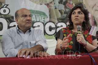 OAXACA, OAXACA., 08JULIO2013.- Ivonne Ortega Secretaria General del PRI, en compañía del candidato a la presidencia municipal de Oaxaca, Javier Villacaña, ofrecieron conferencia de prensa para dar a conocer los resultados de las encuestas en estas pasadas elecciones, en el que aseguran, los resultados le favorecen. FOTO: ADRIANA ALVAREZ /CUARTOSCURO.COM