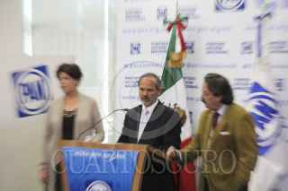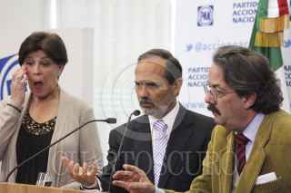 MÉXICO D.F., 09JULIO2013.- Gustavo Madero, presidente del PAN acompañado de Cecilia Romero y Juan Molinar Horcasitas, en conferencia de prensa dio detalles de los resultados de los comicios del pasado siete de Julio y aseguró la victoria de la alianza "Unidos por Baja California". FOTO: SAÚL LÓPEZ /CUARTOSCURO.COM