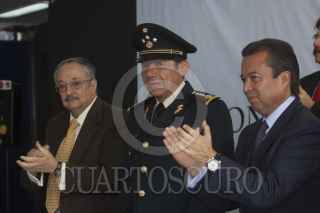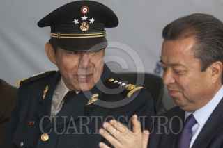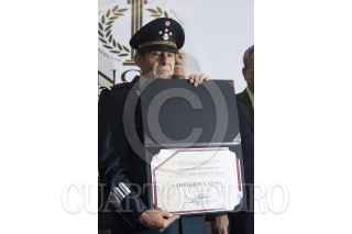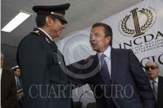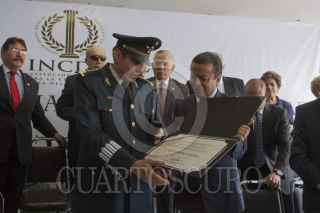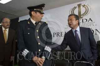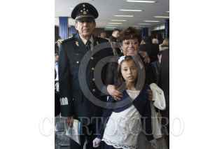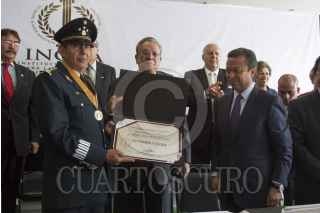 MÉXICO, D.F., 12JULIO2013.- El General Tomás Ángeles Dauahare recibió un el título Honoris Causa por parte del Instituto Nacional para la Celebración del Día del Abogado A.C., en el marco de la 53a Celebración del Día del Abogado 2013. A la ceremonia asistió el dirigente nacional del PRI, César Camacho Quiróz. El General Ángeles estuvo preso el penal de máxima seguridad del Altiplano acusado por la PGR, dependencia dirigida en aquel entonces por Marisela Morales, de colaborar con el crimen organizado.En la imagen Ángeles Dauahare posa para la foto con su esposa Leticia Zepeda y su nieta Ana Valeria. FOTO: MOISÉS PABLO /CUARTOSCURO.COM