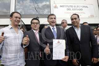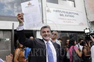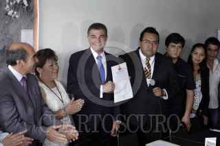 PUEBLA, PUEBLA, 12JULIO2013.- El presidente municipal electo de la capital poblana, Antonio Gali Fayad, recibió su constancia de mayoría de manos del presidente del Consejo Municipal Electoral que lo acredita para obtener el cargo por el periodo 2014-2018. FOTO: HILDA RIOS /CUARTOSCURO.COM