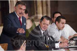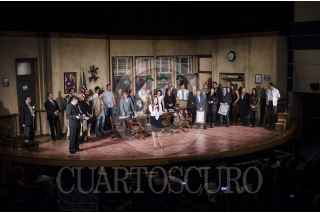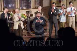 MÉXICO, D.F., 13JULIO2013.- Héctor Suárez, en el papel de jurado 3 en la obra teatral "12 Hombres en Pugna" de la temporada 2013, recibió un homenaje por sus 55 años de carrera artística. FOTO: MISAEL VALTIERRA / CUARTOSCURO.COM