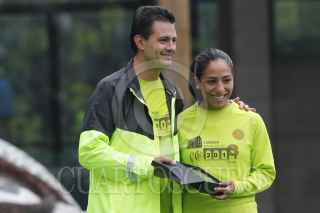 MÉXICO, D.F., 13JULIO2013.- Enrique Peña Nieto, Presidente de México, participó en la carrera Molina del Rey convocada por el Estado Mayor Presidencial, al finalizar el recorrido en Chapultepec el mandatario recibió una medalla que le fue entrega por Roberto Miranda Jefe del Estado Mayor Presidencial, además él entregó reconocimientos a los participantes. FOTO: MOISÉS PABLO /CUARTOSCURO.COM