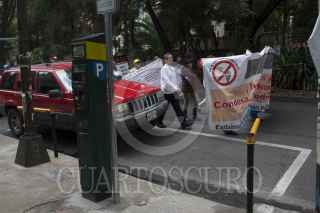 MÉXICO, D.F., 13JULIO2013.- Vecinos de la colonia Condesa e Hipódromo Condesa se manifestaron por la colocación de los Parquímetros, hace unos meses se hizó una consulta ciudadana en la Roma-Condesa para aceptar o rechazar la colocación de estos aparatos y en ese entonces solo algunas zonas aceptaron esta modalidad, sin embargo, en esta ocasión los inconformes denuncian que los habitantes de la colonia Hipódromo Condesa habían rechazado esta posibilidad y ahora la empresa ecoParq empezó a colocar los parquímetros y comenzarán a funcionar el próximo lunes, advirtieron que se vendrá una escalada de amparos en contra de esta arbitrariedad, denunciaron. FOTO: MOISÉS PABLO /CUARTOSCURO.COM