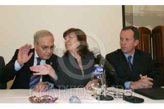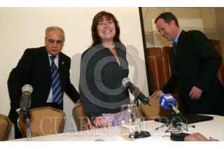MEXICO, D.F. 23SEPTIEMBRE2005.- Cristóbal Jaime Jacques, director de la Comisión Nacional del Agua, Doña Cristina Nabona Ruíz, ministra de de Madrid del Agua y Jose Luis Luege Tamargo, titularde la SEMARNAT previo a la conferencia que ofrecieron a los medios de comunicación para hablar sobre el IV Foro Mundial del Agua México 2006. FOTO: Nelly Salas/CUARTOSCURO.COM