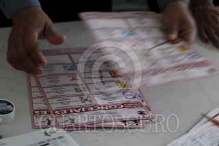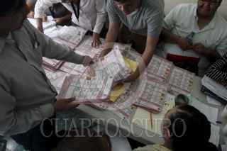 OAXACA, OAXACA, 15JULIO2013.- El conteo voto por voto en el Consejo Municipal de la ciudad de Oaxaca continúa este lunes, a dos días de haber iniciado se han contado un aproximado de 180 casillas de las 362, de acuerdo con los representantes de partidos el proceso concluirá la noche de este martes. Para el conteo el proceso se dividió en 4 mesas en las que participan representantes de los partidos políticos así como trabajadores del Instituto Estatal Electoral y de Participación Ciudadana de Oaxaca (IEEPCO). FOTO: ARTURO PÉREZ ALFONSO/CUARTOSCURO.COM
