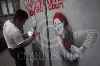 MÉXICO D.F., 16JULIO2013.- Un artista realiza un mural conmemorativo al 4to Festival de Pantomima, Circo y Clown en el Museo de la Ciudad de México. FOTO: MOISÉS PABLO /CUARTOSCURO.COM