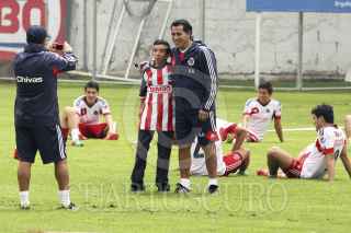 ZAPOPAN, JALISCO, 16JULIO2013.- Esta mañana en las instalaciones de Verde Valle el equipo del Guadalajara realizo la practica de hoy, esto de cara a su preparación para el Torneo Apertura 2013 de la Liga MX el cual ya esta en puerta, al final del entrenamiento los jugadores y cuerpo técnico se tomaron una fotografía con un aficionado el cual fue llamado por el DT, Benjamín Galindo. FOTO: FERNANDO CARRANZA GARCÍA /CUARTOSCURO.COM