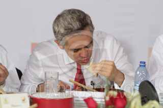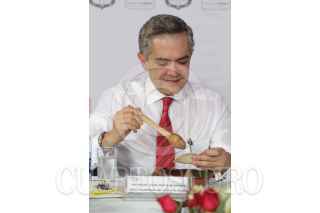 MÉXICO, D.F., 16JULIO2013.- Miguel Ángel Mancera, jefe de gobierno del D.F., acudió al Restaurante "El Taquito", que cumple 90 años. Ahí se llevó a cabo la reunión para los planes preparatorios de Relanzamiento de la Merced, que pretende reactivar no solo el Mercado, sino también el repoblamiento habitacional y cultural de la Zona. Al finalizar el jefe de gobierno degusto unos tacos d chicharrón con guacamole. FOTO: JUAN PABLO ZAMORA /CUARTOSCURO.COM