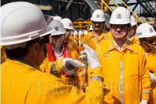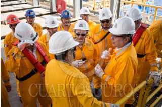 CIUDAD DEL CARMEN, CAMPECHE, 16JULIO2013.- Pedro Joaquín Coldwell, Secretario de Energía, realizó una gira de trabajo por la plataforma autoelevable de exploración Taxco, perteneciente a la Sonda de Campeche y operada por Petroleos Mexicanos (Pemex), plataforma de última generación la cual alberga a 106 trabajadores. FOTO: ESPECIAL / CUARTOSCURO.COM