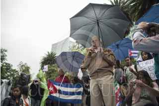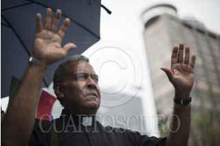 MÉXICO, D.F., 17JULIO2013.- Raúl Vera, obvispo emérito de Saltillo, Coahuila; encabezó la manifestación "Pastores por La Paz", organizado y encabezado por el Movimiento de Solidaridad con Cuba y diversas organizaciones sociales. Ésto se llevó acabo en la Embajada de Estados Unidos en México, ubicada en Paseo de la Reforma. FOTO: MISAEL VALTIERRA / CUARTOSCURO.COM