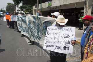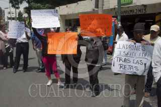 MÉXICO, D.F., 18JULIO2013.- Afectados por un fraude par parte de los hermanos Israel Atri se manifestaron afuera de la sede de la Procuraduría General de Justicia del DF al Zócalo para que la autoridad correspondiente toma cartas en su problemática, ellos denuncian que los hermanos Gaston, Michel Allan y Daniel los embaucaron al hacerse pasar como desarrolladores inmobilairios y comenzaron, sin terminar, los proyectos Mirabella 2, Mirabella 3, Mirabella del Lago de Guadalupe y Mirabella Reforma, en los cuales cobraron los adelantos sin que entregarán las casas, además de que obtuvieron créditos de inversionistas y bancos, mismos que nunca pagaron. Los hermanos Israel Atri cometieron el más audaz de sus fraudes en el Conjunto Mirabella 3, en el fraccionamiento Lomas del Río, en las inmediaciones de la Herradura, donde adquirieron usando la empresa Inmobiliaria y Constructora Star Building, SA de CV los terrernos del propietario y no los pagaron, además vendieron el proyecto a gente a la que le cobraron. Por si esto fuera poco, y usando un ardid legal con otra de sus empresas Faraway Marina & Beach Club SA de CV en diciembre 2012, pretendieron despojar a los vecinos y ahora están vendiendo a personas diferentes, señalaron. FOTO: MOISÉS PABLO /CUARTOSCURO.COM