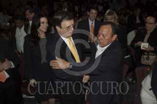 MÉXICO, D.F., 20JULIO2013.- Marcelo Ebrard Sacaubón, Jefe de Gobierno, celebró el encuentro en donde dió a conocer su corriente Movimiento Progresista dentro del Partido de la Revolución Democrática en un hotel del Centro Histórico. Al acto acudió el presidente del partido Jesús Zambrano, Rosalinda Bueso, esposa del ex Jefe de Gobierno, y sus hijas Dominic y Francheca Ebrard. FOTO: MOISÉS PABLO /CUARTOSCURO.COM