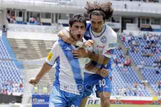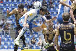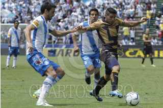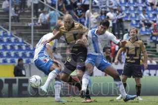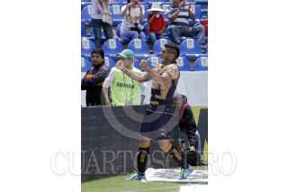 PUEBLA, PUEBLA, 21JULIO2013.- Matías Alustiza festeja el gol del empate por marcador de 1-1 conseguido ante los Pumas de CU, disputado con el Puebla de la Franja en jornada 1 del torneo de Apertura del fútbol mexicano celebrado en el estadio Cuauhtémoc. FOTO: HILDA RIOS /CUARTOSCURO.COM