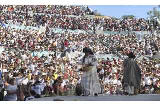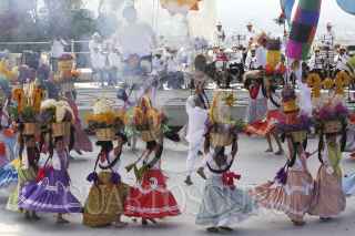OAXACA, OAXACA, 22JULIO2013.- Con la presentación de la Diosa Centéotl dio inicio la fiesta del Lunes del Cerro en el que 14 delegaciones provenientes del todo el estado de Oaxaca deleitan a los turistas locales o extranjeros dando muestra de las tradiciones y cultura de la entidad, zapotecas, mixes, mixtecas, chatinos se presentan en la rotonda de las azucenas. FOTO: ARTURO PÉREZ ALFONSO /CUARTOSCURO.COM