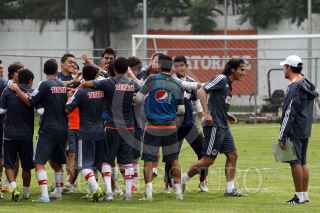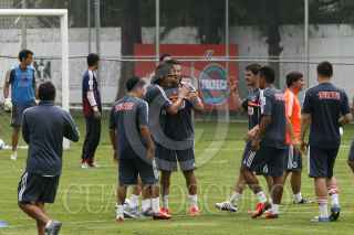 ZAPOPAN, JALISCO, 22JULIO2013.- Esta mañana en las instalaciones de Verde Valle, el atacante Aldo de Nigris fue recibido por sus compañeros de las Chivas de Guadalajara quienes dieron la bienvenida al delantero, que el día de hoy ya realizo trabajo en cancha pero por separado del grupo. FOTO: FERNANDO CARRANZA GARCIA /CUARTOSCURO.COM