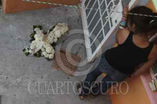 NACAJUCA, TABASCO, 23JULIO2013.- Un arreglo floral mortuorio en forma de cruz con un mensaje de amenazas fueron dejados en la casa del matrimonio conformado por Jesús Estrada Zapata y Aurora Torres, quienes se desempeñan como comandante de la Policía Judicial y reportera de un conocido medio informativo respectivamente. Policía municipal, Policía Ministerial y Peritos tomaron conocimiento de los hechos en el domicilio ubicado en la calle Hicotea, manzana seis, lote 17A del fraccionamiento Pomoca, donde resguardaron la zona e investigan los acontecimientos. FOTO: MARCO POLO GUZMÁN HERNÁNDEZ /CUARTOSCURO.COM