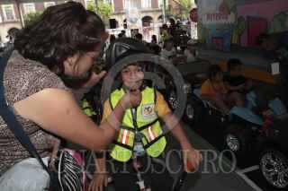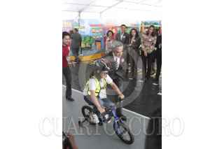 MÉXICO D.F., 24JULIO2013.- El jefe de gobierno del Distrito Federal, Miguel Ángel Mancera, inauguró "Guardián Urbano" en el Zócalo capitalino, una ciudad en miniatura para que niños de 5 a 9 años puedan practicar y aprender sobre cultura y civilidad vial. Según el jefe de Gobierno, la mini ciudad será visitada por mil 500 menores al día de 10 a 18 horas. Podrán circular de forma gratuita en bicicletas, triciclos y autos en miniatura por los circuitos viales que simulan Avenida Paseo de la Reforma, incluso con un Ángel de la Independencia. FOTO: JUAN PABLO ZAMORA /CUARTOSCURO.COM