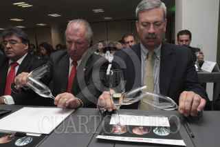 MÉXICO, D.F., 24JULIO2013.- Ramón González Figueroa, titular del Consejo Regulador del Tequila, Eduardo Orendáin, presidente de la Industria Tequilera, y Francisco González Díaz, director General de ProMéxico, realizaron la presentaciónde de la serie de televisión Tequila Hasta los Huesos, producido por la Universidad de Guadalajara. Al finalizar esta presentación realizaron la cata magistral "Los Aromas del Tequila" a cargo de Ana María Romero. A este evento fue invitado el cuerpo diplomático de diversas embajadas en el País. FOTO: JUAN PABLO ZAMORA /CUARTOSCURO.COM