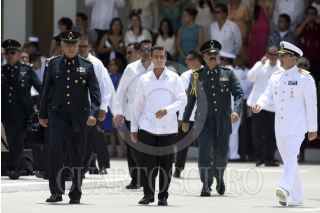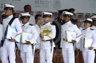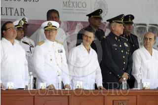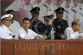 ALVARADO, VERACRUZ., 25JULIO2013.- Enrique Peña Nieto, Presidente de la República; presidió la ceremonia de graduación de cadetes de la Heroica Escuela Naval Militar acompañado de secretarios de despacho, funcionarios estatales y federales, oficiales navales y militares. El mandatario indicó que la Secretaría de Marina ha sido partícipe en el objetivo de hacer valer el Estado de Derecho y reconoció el trabajo realizado para capturar a Miguel Ángel Treviño Morales, alias “Z-40”, a quien definió como uno de los líderes más peligrosos y más buscado del país. FOTO: FÉLIX MÁRQUEZ / CUARTOSCURO.COM