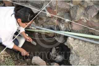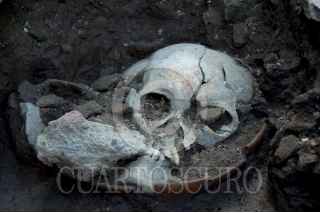 MÉXICO, D.F., 26JULIO2013.- Arqueólogos del Instituto Nacional de Antropología e Historia (INAH) hallaron recientemente el cráneo de un individuo decapitado, de 500 años de antigüedad, en la Zona Arqueológica de Tlatelolco, que forma parte de una pequeña ofrenda localizada al pie del Templo Mayor del sitio prehispánico. De acuerdo con el arqueólogo Salvador Guilliem, director del Proyecto Tlatelolco, el resto óseo corresponde a un joven adulto y se encontraron depositados sobre una vasija. Ambos materiales se localizaron a un nivel que está relacionado con la etapa constructiva VII-A del Templo Mayor, correspondiente a los años 1500 y 1515 d.C. El especialista del INAH refirió que el hallazgo se registró dentro de la primera fase del trabajo de exploración arqueológica, por lo que no ha sido posible determinar las dimensiones de la ofrenda, la cual podría ser de consagración, es decir, que se colocó durante los rituales de preparación del espacio que ocuparía dicha edificación. FOTO: INAH/ MELITÓN TAPIA /CUARTOSCURO.COM