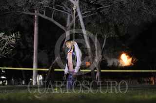 MÉXICO D.F. 27JULIO2013.- Un joven, quien respondía en vida al nombre de Francisco Javier Ramírez Martínez 22 años, decide quitarse la vida colgándose de un árbol sobre el camellón que divide los sentidos de circulación de Periférico a la altura de la calle Telecomunicaciones en la colonia Leyes de Reforma 2ª sección. FOTO: LUIS CARBAYO /CUARTOSCURO.COM