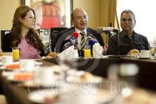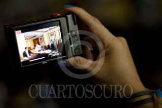MÉXICO, D.F., 27JULIO2013.- Rafael Guarneros, del Movimiento Nacional Panista, acompañado de militantes del Patido Acción Nacional (PAN), miliantes de base o de "a pie"; encabezó una conferencia de prensa en la cual dieron su postura respecto a los acuerdos durante la Asamblea Nacional Extraordinaria del PAN, en el cual reconoce el derecho de los militantes a votar y elegir de forma directa a los Presidentes de los Comités Directivos Municipales,Estatales y Nacional. Además suscribieron una carta dirigida a los dirigentes del partido. En la imagen, una periodista toma una fotografía de la conferencia. FOTO: MISAEL VALTIERRA / CUARTOSCURO.COM