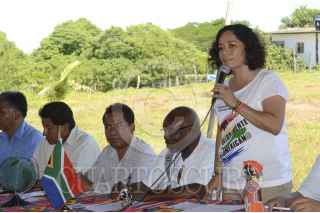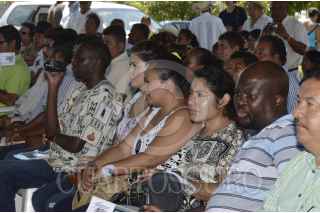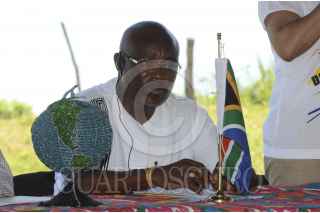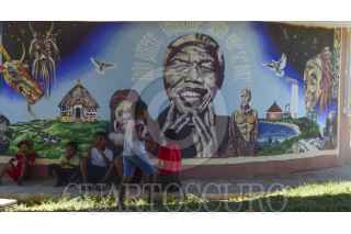 CUAJINICUILAPA, GUERRERO, 27JULIO2013.- En lo que constituyó un reencuentro “histórico y muy emotivo” entre los pueblos negros de Guerrero y Sudáfrica, el embajador del país africano, Sandile Nogxina, se dijo dispuesto a colaborar con proyectos de cultura, educación y desarrollo en beneficio de la población afrodescendiente de México. Esos proyectos, que están en proceso de definición por parte del Colectivo Nacional Afromexicano (Conafro), grupo organizador del encuentro, también podrían incluir a los pueblos indígenas del estado de Guerrero, agregó el diplomático que visitó esta comunidad para develar un mural en honor del ex presidente sudafricano Nelson Mandela. Al encuentro entre los representantes del gobierno sudafricano y los pueblos negros de la Costa Chica de Guerrero asistieron Filemón Navarro Aguilar, secretario de Asuntos Indígenas; los diputados federales Carlos de Jesús Alejandro y Teresa Mojica Morga, promotora del encuentro, así como Martha Sánchez Néstor, coordinadora de la Alianza de Mujeres Indígenas de México y Centroamérica, además de comisarios de algunos de los pueblos con mayor presencia de afrodescendientes. FOTO: BERNANDINO HERNÁNDEZ /CUARTOSCURO.COM