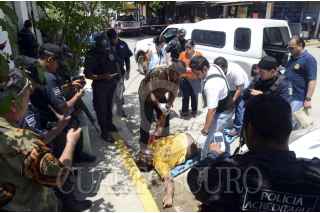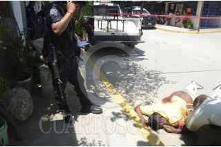 ACAPULCO, GUERRERO, 27JULIO2013.- Con armas de fuego calibres 9 milímetros, fueron ejecutados los taxistas Obed Zúñiga López, Margarita Trejo López, estos dos matrimonio y Santiago Calleja Chávez, ambos de 31, 29 y 25 años de edad, respectivamente. Los cadáveres quedaron tirados en diferentes direcciones de la colonia Izazaga. Los hechos aparentemente ocurrieron cuando los taxistas llegaron a la cancha de la colonia mencionada, llegaron a tratar de preparar el almuerzo, ya que había chicharrón, tortilla y refrescos de cocacola, tirados y los cuerpos tirados con varios impactos de balas en el cuerpo. Presuntamente los tres trabajadores del volante, fueron acatados por un comando armado que llegó hasta donde se hallaban reunidos y ahí los abatieron a balazos. Los nombres de los hoy occisos fueron proporcionados por la señora Norma Nieves. FOTO: BERNANDINO HERNÁNDEZ /CUARTOSCURO.COM
