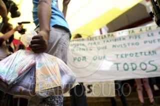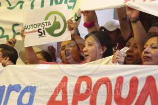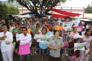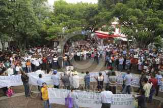 TEPOZTLÁN, MORELOS 28JULIO2013.- Grupos que apoyan el proyecto de ampleación de la autopista La pera-Cuautla, marcharon hasta el zócalo de tepoztlán donde se encontraban el grupo antagonico que desaprueba dicho proyecto, esto generó ambiente tensión en el centro de dicha localidad. FOTO: ALMA LAFAYET /CUARTOSCURO.COM