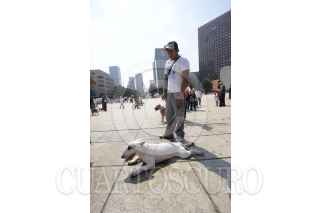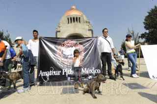 MÉXICO, D.F.28JULIO2013.- En el Monumento a la Revolución, manifestación de dueños de perros Pit Bull, quienes están en contra de las peleas de perros y dicen que es una raza muy tranquila. FOTO: IVÁN MÉNDEZ /CUARTOSCURO.COM