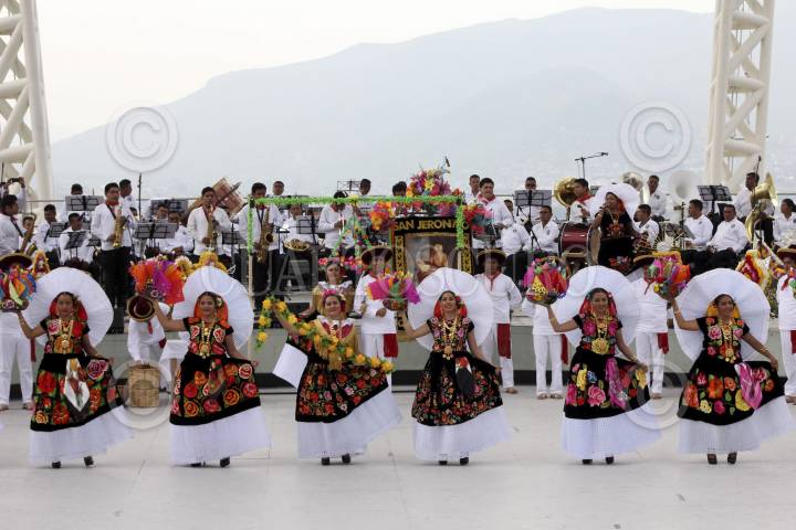 OAXACA, OAXACA, 29JULIO2013.- Este lunes se realizó la octava del Lunes del Cerro en el auditorio Guelaguetza, en el que se presentaron un total de 30 delegaciones provenientes del mismo número de comunidades, mostrando las costumbres y tradiciones de las diversas etnias de Oaxaca. FOTO: ARTURO PÉREZ ALFONSO /CUARTOSCURO.COM