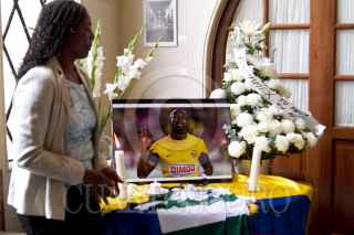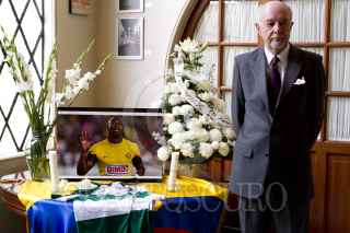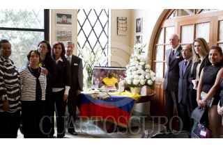 MÉXICO D.F., 30JULIO2013.- Alfonso López Araujo, embajador de Ecuador en México, acompañado de trabajadores y ciudadanos ecuatorianos acudieron a la misa en honor del jugador de futbol Christian Chucho Benítez, goleador del América en la pasada temporada, quien murió este lunes a los 27 años en Qatar a causa de un paro cardiaco., la misa se realizo en las instalaciones de la embajada de Ecuador. FOTO: GUILLERMO PEREA /CUARTOSCURO.COM