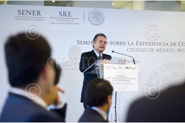 MÉXICO, D.F., 06JULIO2013.- Javier Gutiérrez Pemberthy, presidente de Empresa Colombiana de Petroleo (ECOPETROL), durante su ponencia en el "Seminario sobre la Experiencia de Colombia en Materia Petrolera", llevado acabo en la Secretaría de Relaciones Exteriores. FOTO: MISAEL VALTIERRA / CUARTOSCURO.COM