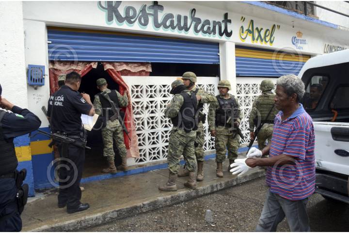 ACAPULCO, GUERRERO, 31JULIO2013.- Esta mañana, varios hombres armados llegaron al interior de la cantina “Restaurante Axel”, donde murio a balazos, Francisco Martínez Gómez de 35 años de edad, quien se encontraba lavando su negocio.Los hechos se desarrollaron en avenida las Parotas, frente al mercado de las Cruces y a unos metros del sitio de taxis, hechos que movilizaron a las autoridades policíacas de los tres niveles de gobierno así como a los militares. Las autoridades del Ministerio Público de la colonia Emiliano Zapata, a cargo del licenciado Mauricio Moreno Mejía, quien de inmediato flanqueó la entrada de la cantina y en seguida los peritos a cargo de Félix González, levantaron cuatro casquillos percutidos de calibre 45. FOTO BERNANDINO HERNÁNDEZ /CUARTOSCURO.COM