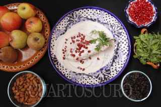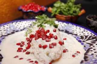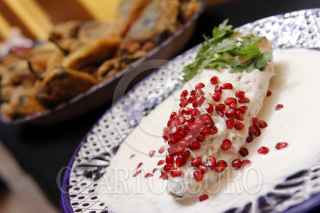 PUEBLA, PUEBLA, 01AGOSTO2013.- Aspecto del tradicional Chile en Nogada, considerado como el "platillo poblano por excelencia" el cual fue creado por las monjas agustinas del convento de Santa Mónica como un homenaje a Agustín de Iturbide cuando volvía de firmar en Córdoba -estado de Veracruz- la independencia de México. Se prepara con chile poblano relleno de un guisado de picadillo y frutas, cubierto con crema de nuez, perejil y granada, con lo cual se simbolizan los tres colores de la bandera de México. Ha sido considerado internacionalmente uno de los más finos y representativos platillos de la alta cocina mexicana. FOTO: HILDA RIOS /CUARTOSCURO.COM
