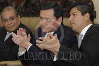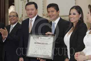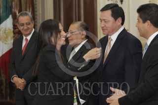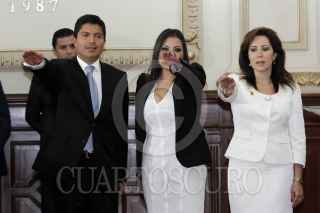PUEBLA, PUEBLA, 02AGOSTO2013.- Leticia Quezada, delegada de la Magdalena Contreras, tomó protesta como presidenta de la Conferencia Nacional de Municipios de México (Conamm) tras terminar el periodo del alcalde de Puebla Eduardo Rivera Pérez. En la imagen también se observa de Barbara Botello, alcaldesa de León. FOTO: HILDA RÍOS /CUARTOSCURO.COM