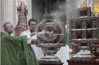 MÉXICO, D.F., 04AGOSTO2013.- Jorge Estrada Solórzano, obispo, ofició la homilía dominical en la catedral metropolitana dedicada a los santos y beatos que participaron en la Guerra Cristera. FOTO: IVÁN STEPHENS /CUARTOSCURO.COM