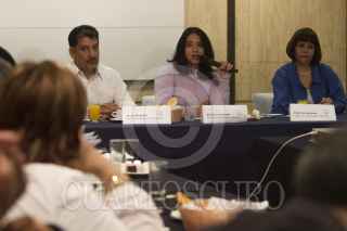 MÉXICO, D.F., 04AGOSTO2013.- Cristina Gallardo, Presidenta de Compartiendo la Educación, acompaña de Jorge Negrete y Patricia Gallardo, durante la conferencia ofrecida a los representantes de los medios de comunicación. FOTO: GUILLERMO PEREA /CUARTOSCURO.COM